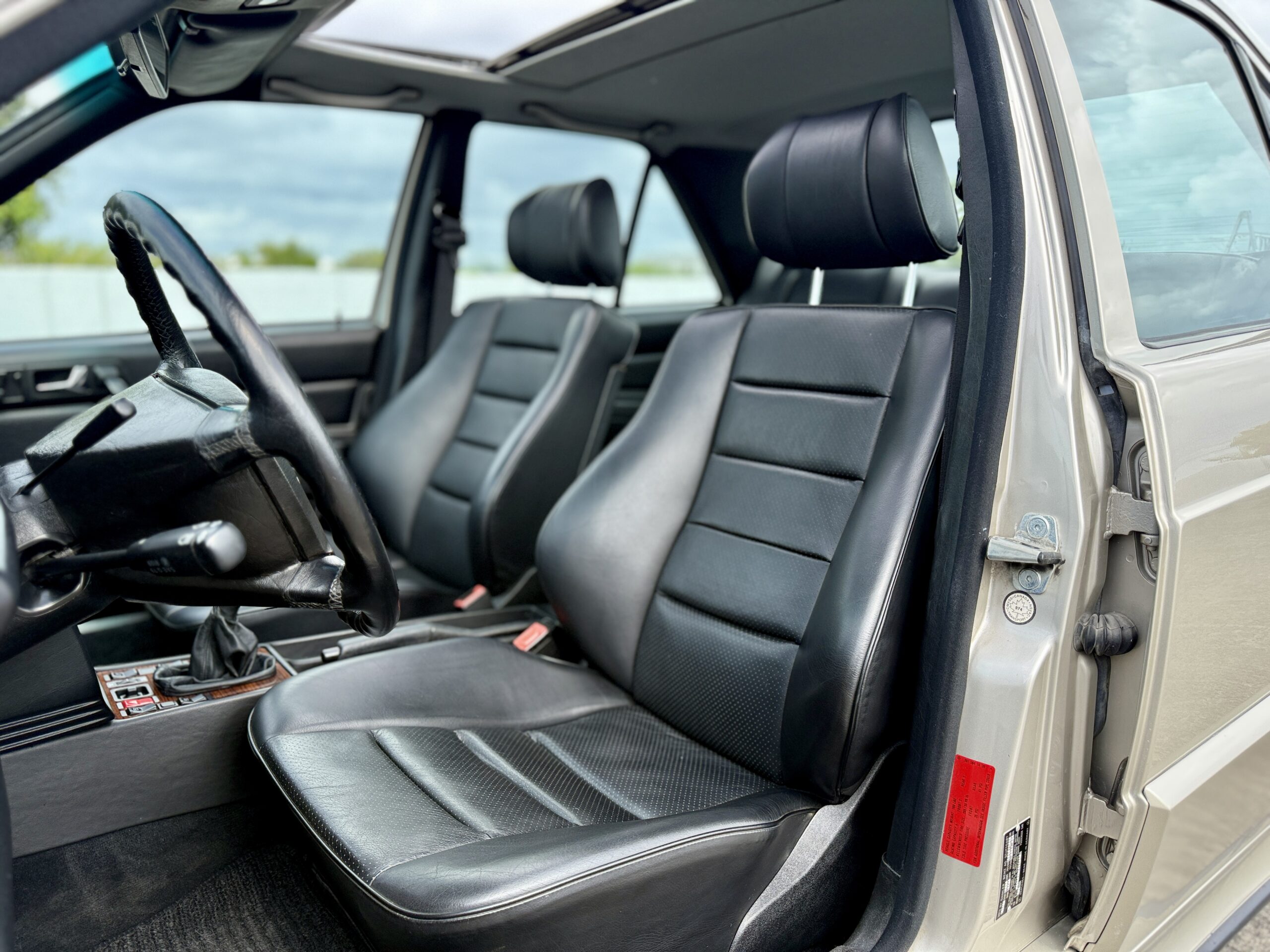 This 1987 Mercedes-Benz 190E 2.3-16V is a European-spec example showing 133,937 kilometers (~83,270 miles) and presented in excellent condition inside and out. Finished in Smoke Silver Metallic (702) over Black Leather (271), this performance-oriented “baby Benz” is powered by a 2.3-liter DOHC 16-valve inline-four developed in collaboration with Cosworth, paired with a Getrag 5-speed dogleg manual transmission and a limited-slip differential.